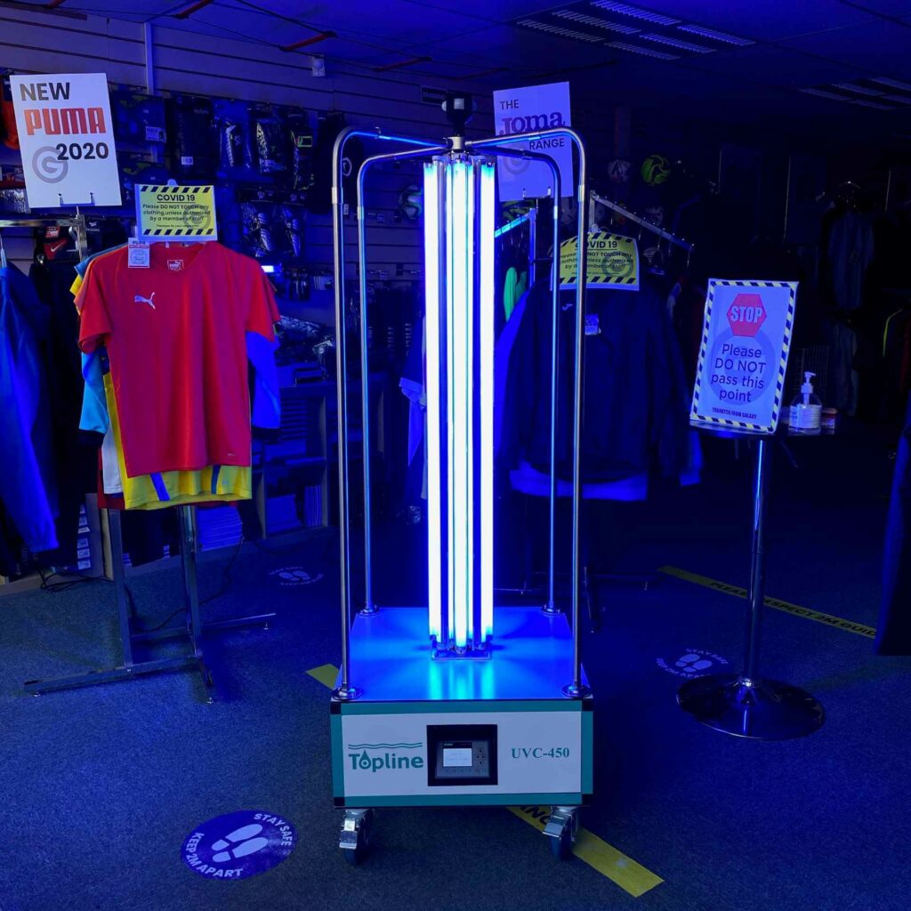 The British-designed and built UV-Systems UVC-450 is a high-output portable UVC disinfection unit that works alongside your regular cleaning regime, safely killing up to 99.99% airborne and surface laid viruses and bacteria in a range of indoor environments from ceiling to floor in a fast, thorough, efficient and safe manner.